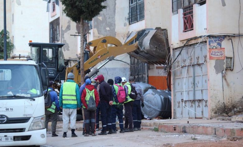 تنفيذا لتعليمات والي ولاية وهران الرامية إلى تحسين الإطار العمراني للمدينة، ومحاربة الأسواق الفوضوية والتوسعات العشوائية للمحلات قامت امس خلية البيئة وحماية المحيط بديوان الوالي بالتنسيق مع مصالح بلدية بئر الجير ومصالح الأمن الوطني بعملية واسعة لإزالة التوسعات الفوضوية للمحلات التجارية الحاجزة للرصيف بشكل غير قانوني و الأكشاك العشوائية على مستوى حي النور ببلدية بئر الجير ،حيث أسفرت العملية عن إزالة 27 كشك عشوائي و 41 توسع غير قانوني لمحلات تجارية. و 19 توسع فوضوي لشرفات العمارات على مستوى الطابق الأرضي للعمارات حيث رافق العملية مختلف المصالح التقنية لتسهيل ازالة هذه التوسعات ولتفادي أي خطر ينجم عن إزالتها تأتي هذه العمليات في إطار تحسين الإطار العمراني للمدينة، وإعادة النظام والانسجام للمحيط الحضري. ق م